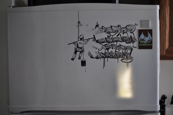 Додека сите останати луѓе на светот закачуваат украсни магнети на својот фрижидер, Чарли Лејтон, кој работи како хонорарен дизајнер, својот ладилник креативно го трансформира во уметничко дело. Бидејќи надворешниот дел од фрижидерот е направен од ист материјал како табла за пишување со неперманентен маркер, тој решил малку поинаку да го украси својот.