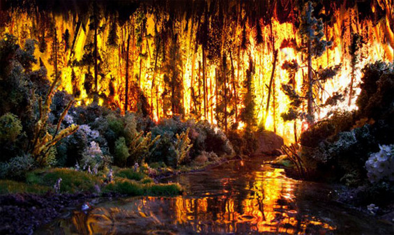 Метју Албанезе, фотограф од Њу Џерси, пред да почне да работи прво оди до супермаркет да набави памук, кафе, чоколадо, ќеси за ѓубре и многу други предмети кои потоа ги комбинира со фотографските вештини и ги создава овие вештачки копии на природниот амбиент наречени диорами. Една диорама се конструира цел месец, а тој потоа ја фотографира по повеќе од 500 пати сè додека не биде задоволен од резултатот. Ако сè уште се чудите зошто никако не успевате ниту со голо око да здогледате пејзаж како оние на фотографиите кои одземаат здив, разгледајте ја следната галерија.
