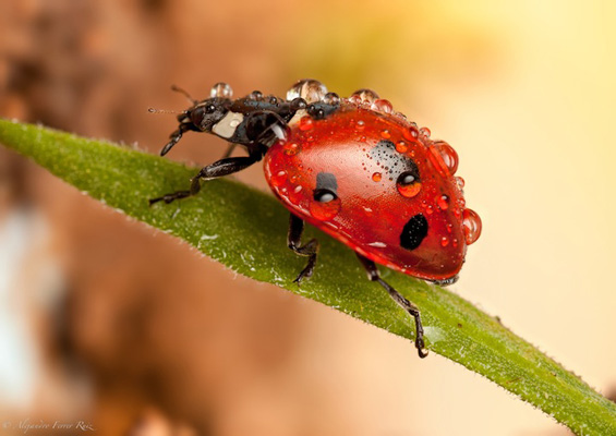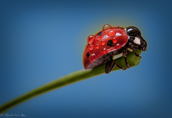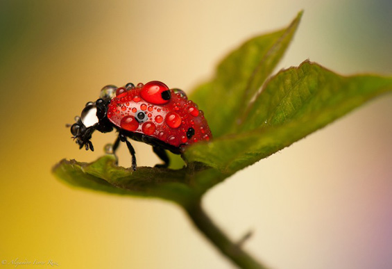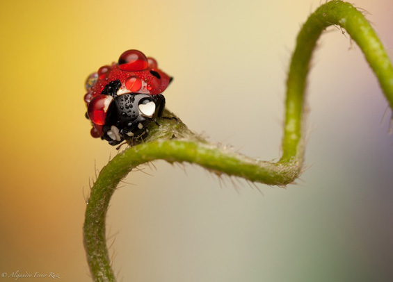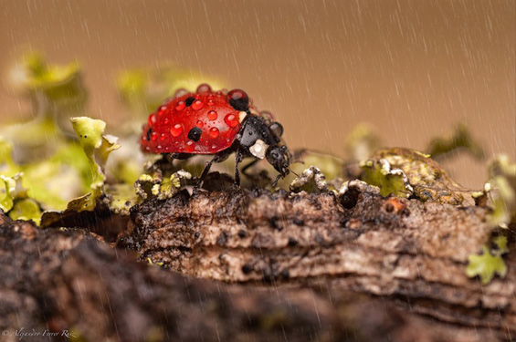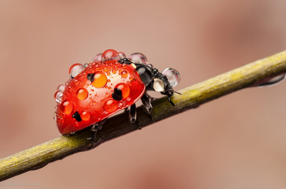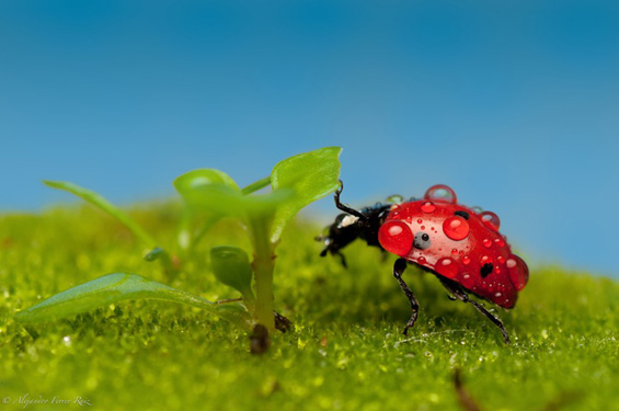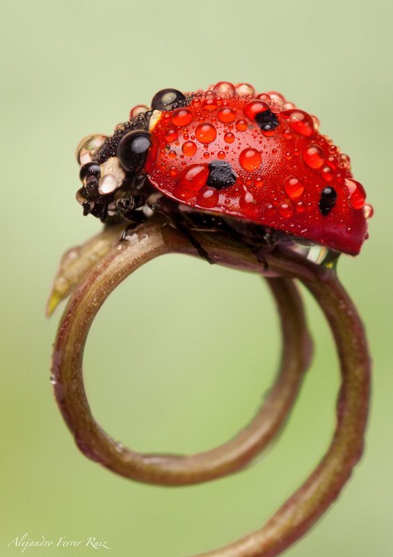 Дождливите денови можат да бидат навистина досадни, но замислете си како им е на бубамарите! Гледајќи низ призмата на шпанскиот фотограф Алехандро Ферер Руиз, дождот изгледа навистина прекрасно и магично. Макрофотографиите од овие малечки симпатични животинки, со дождовни капки распослани по нивниот грб, се истовремено фасцинантни и неверојатно симпатични.