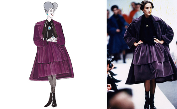 Можеби најфенси ликот од целиот асортиман на Дизни, Круела де Вил, која при ваквата модна преобразба убедливо го докажува тоа. Нејзината опседнатост да го најде совршеното крзнено палто, ја води кон многу авантури. Не го одобруваме палтото со мотив од „101 далматинец“ и вистина штета што не ѝ текнало на моделот од колекцијата на Долче и Габана, есен/зима, 2010-та, со розово крзно, што совршено ѝ прилега, за разлика од црно-белиот дезен.