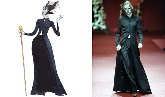 Таа е еден од најстрашните ликови на Дизни, господарка на злото и клетвите. Во последната адаптација на „Заспаната убавица“, токму Анџелина Џоли ќе ја игра нејзината улога. Овде таа носи црн, елегантен костим, инспириран од свештенството, а од колекцијата есен/зима, 1999-та, Долче и Габана.