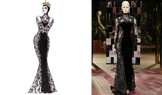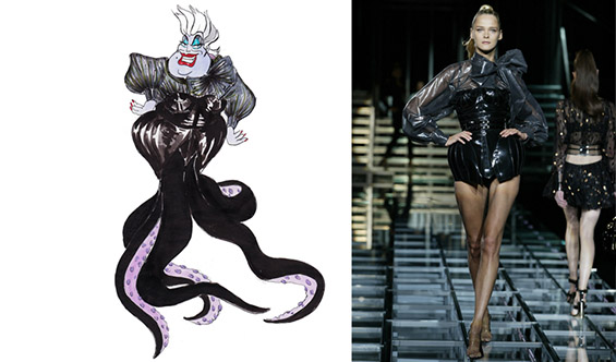 Кој вели дека цртаните ликови не можат да носат висока мода? Урсула и други злобни ликови од цртаните на Дизни се претставени како модели на висока мода, користејќи ја архивата на колекциите на Долче и Габана и креативноста на Лучио Палмиери и неговите илустрации.
