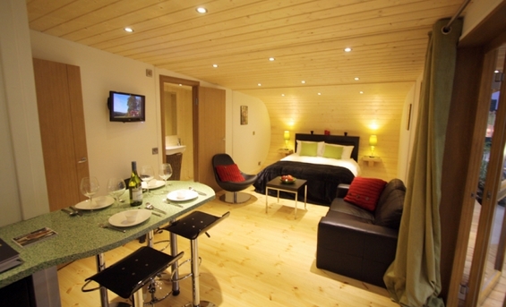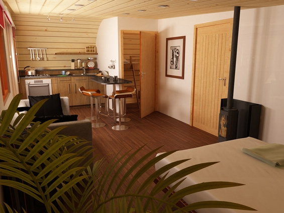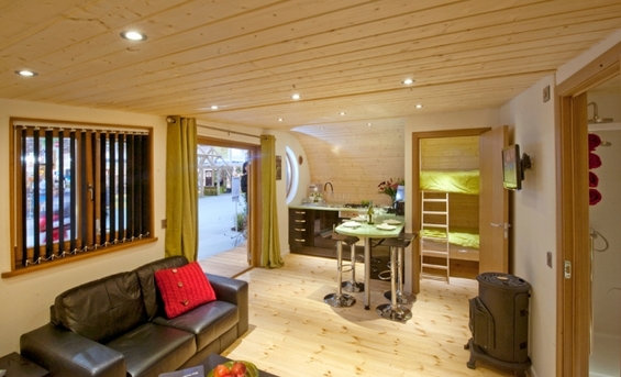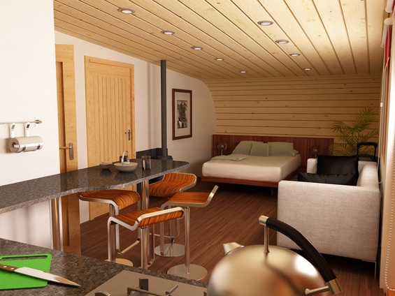 Куќичката „Eco Perch“ е доволно просторна и во себе содржи целосна кујна, трпезарија, приватна спална соба, дневен простор со удобна софа и голем кревет, како и купатило. Дрвената структура на куќата е дополнета со големи прозорци и стаклени врати.