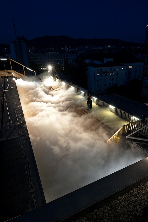Креирана од јапонскиот артист Фуџико Накаја во 2011 година, „Cloud Parking“ е магична инсталација која им дава шанса на луѓето да чекорат низ облаците, односно низ густа магла. Овие вештачки облаци се лоцирани во Линз, Австралија, на кровот на една зграда каде што посетителите можат целосно да се предадат на магичното искуство.