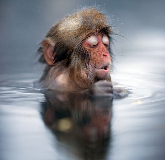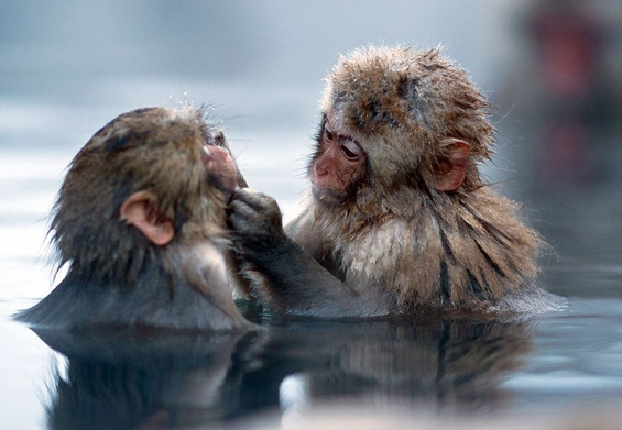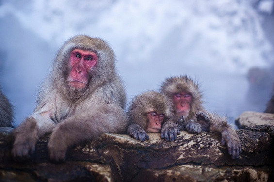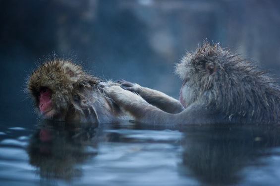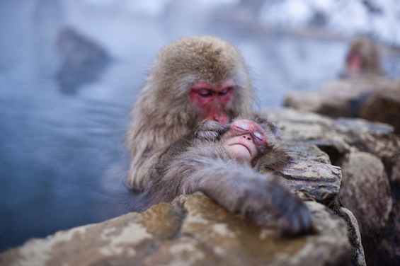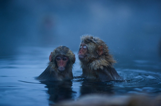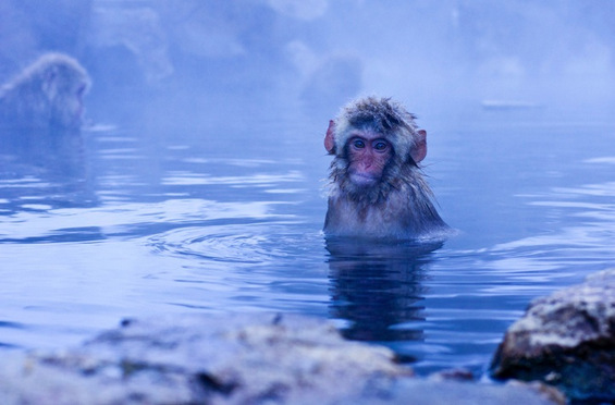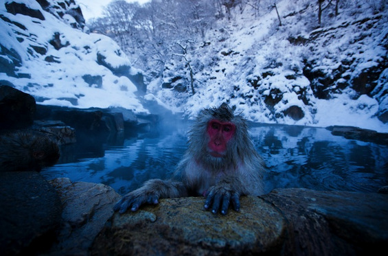 Националниот парк Јигокудани во Јапонија е дом на голем број макаки мајмуни кои спасот од ниските зимски температури го бараат во топлите термални извори во долината на реката Јокоју. Се спуштаат од стрмните карпести планини и доаѓаат во оваа бања на отворено за да ги поминат зимските денови во многу поудобен амбиент.