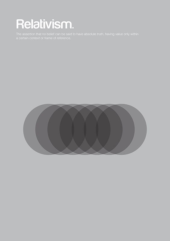 Релативизмот ја откажува објективната вистина. Не признава никакви апсолутни принципи, или апсолутни вистини.