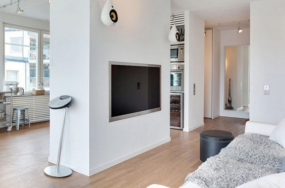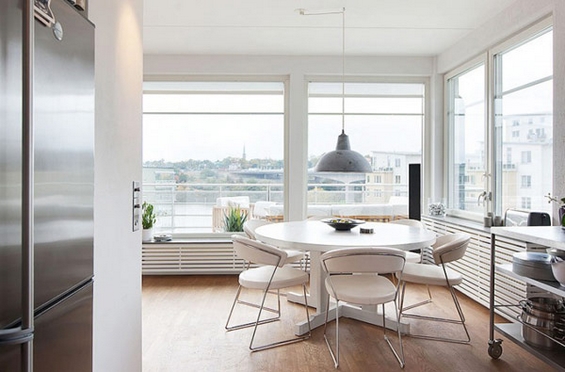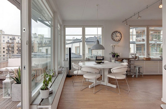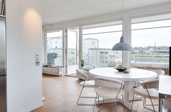 Овој интересен стан се наоѓа на малиот остров Лила Есинџен во Стокхолм, Шведска. Трисобниот стан се наоѓа на врвот на една зграда и е распослан на површина од 77 квадратни метри, а има и огромен балкон. Во кој било дел од денот, осветлен е со дневна светлина благодарение на големите прозори.