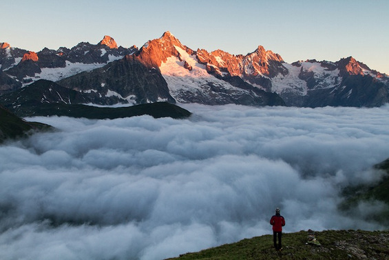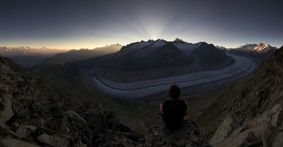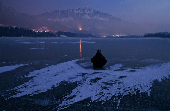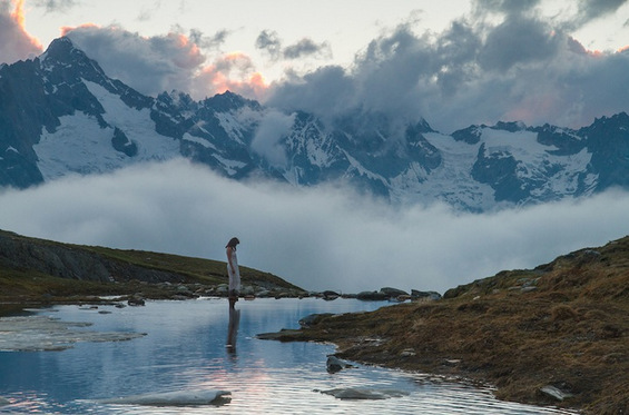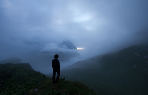 Следните неколку фотографии носат заедничко име „Самотија“. Тие се дело на фотографот Жил Моне, кој во планините во Швајцарија пронашол идеално место за релаксација и медитација. На сите нив е фотографиран тој самиот, прикажан како премногу мал во споредба со природата, но претопен со неа така што може целосно да ја впие нејзината смиреност.