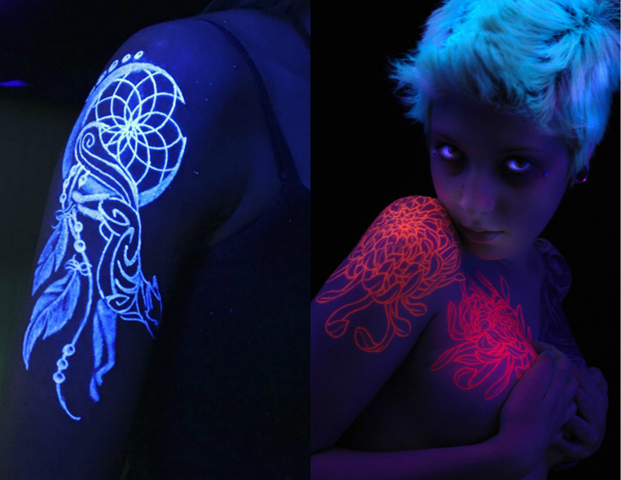 Доколку планирате да се тетовирате или да им дадете малку живот и карактер на вашите стари тетоважи, тогаш не брзајте и одвојте малку време да ги разгледате овие идеи кои можат да бидат забележани само под одредени услови. Тие реагираат кога се изложени на црна светлина, па ќе бидете единствени и уникатни во секој клуб, кафуле и забавен локал кој располага со УВ светлосни зраци. Во продолжение погледнете неколку интересни дизајни и разбудете ја креативноста во вас. Идеите ве чекаат!