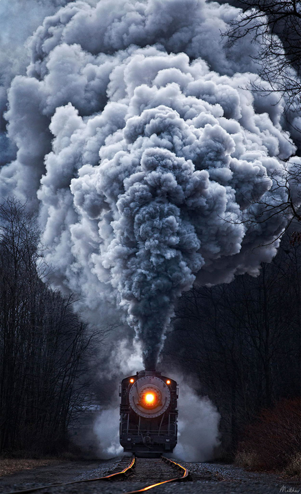 Моќни парни мотори испуштаат огромни облаци од чад во воздухот, додека патуваат низ неверојатни области ширум светот. Инженерот и фотограф, Метју Малкиевич обожава да патува, но и да ги документира своите искуства од патувањата. Токму затоа тој прави одлични фотографии од возови додека тие се движат по пругата. Во секоја магична сцена, артистот ги повикува гледачите на авантура низ сончевите, снежните или грубите предели со цел да уживаат во патот и да не се грижат за дестинацијата. Погледнете дел од неговата фасцинантна работа…