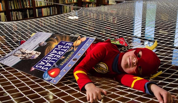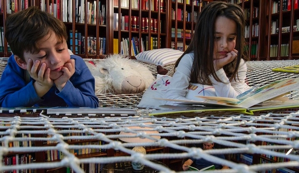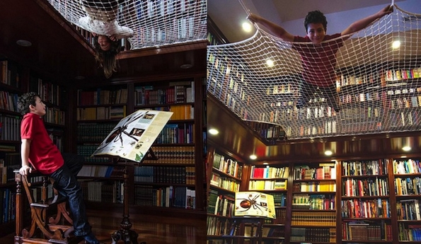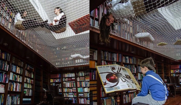 Мадридското студио дошло до идеја да инсталира ваква кул мрежа во библиотека, но таа може да се постави и во секој дом. Заштедата на просторот и разиграноста на мрежата, се среќно решение и за родителите и за децата.