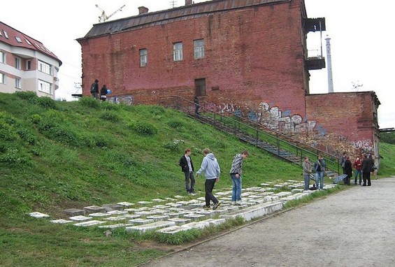 Рускиот артист Анатолиј Вујаткин инсталирал огромна копија на кирилската QWERTY тастатура во земја, изработена од 86 камени тули, а од кои секоја тежи по 453 кг. Споменикот-тастатура, кој во некои кругови го нарекуваат и „Клаудија“, претставува трајна надворешна скулптура, лоцирана во Екатеринбург, Русија, каде воедно претставува и значајна туристичка атракција.