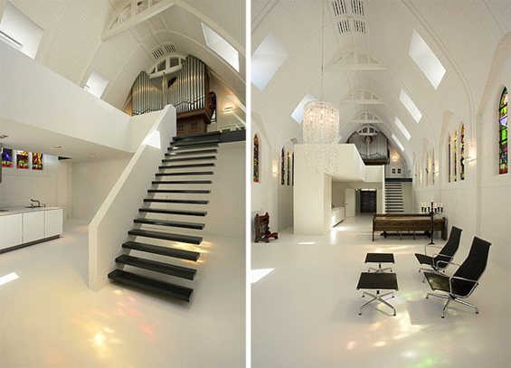 Архитектонската компанија „Zecc Architecten“ направила два необични проекта. Две напуштени цркви кои се наоѓаат во Утрехт, Холандија, тие ги претвориле во прекрасни фамилијарни домови за живеење. Ентериерот во куќите е стилски, а од надворешниот изглед на градбите ништо не е променето. Исто така, некои елементи од поранешниот ентериер од црквите се оставени недопрени, па така во комбинација со модерното, се добива нов, интересен, уникатен изглед. Па што мислите, би живееле ли вие во ваква куќа?
