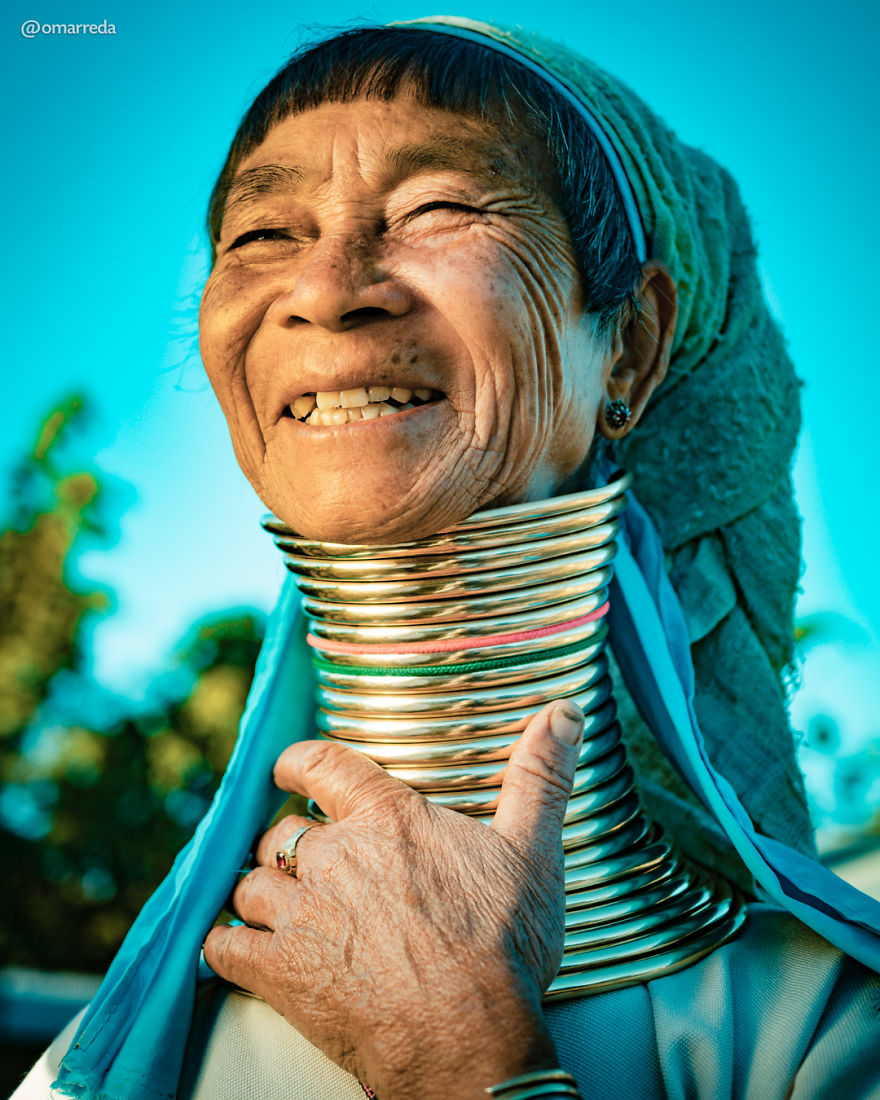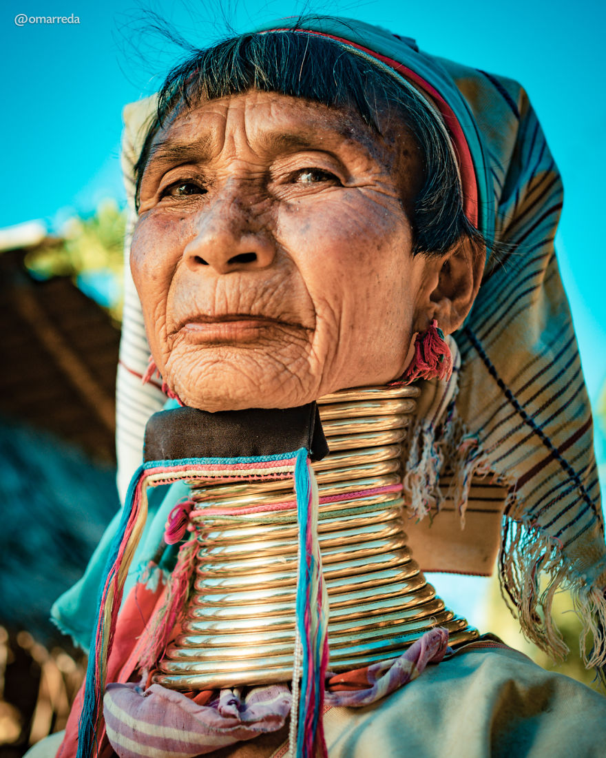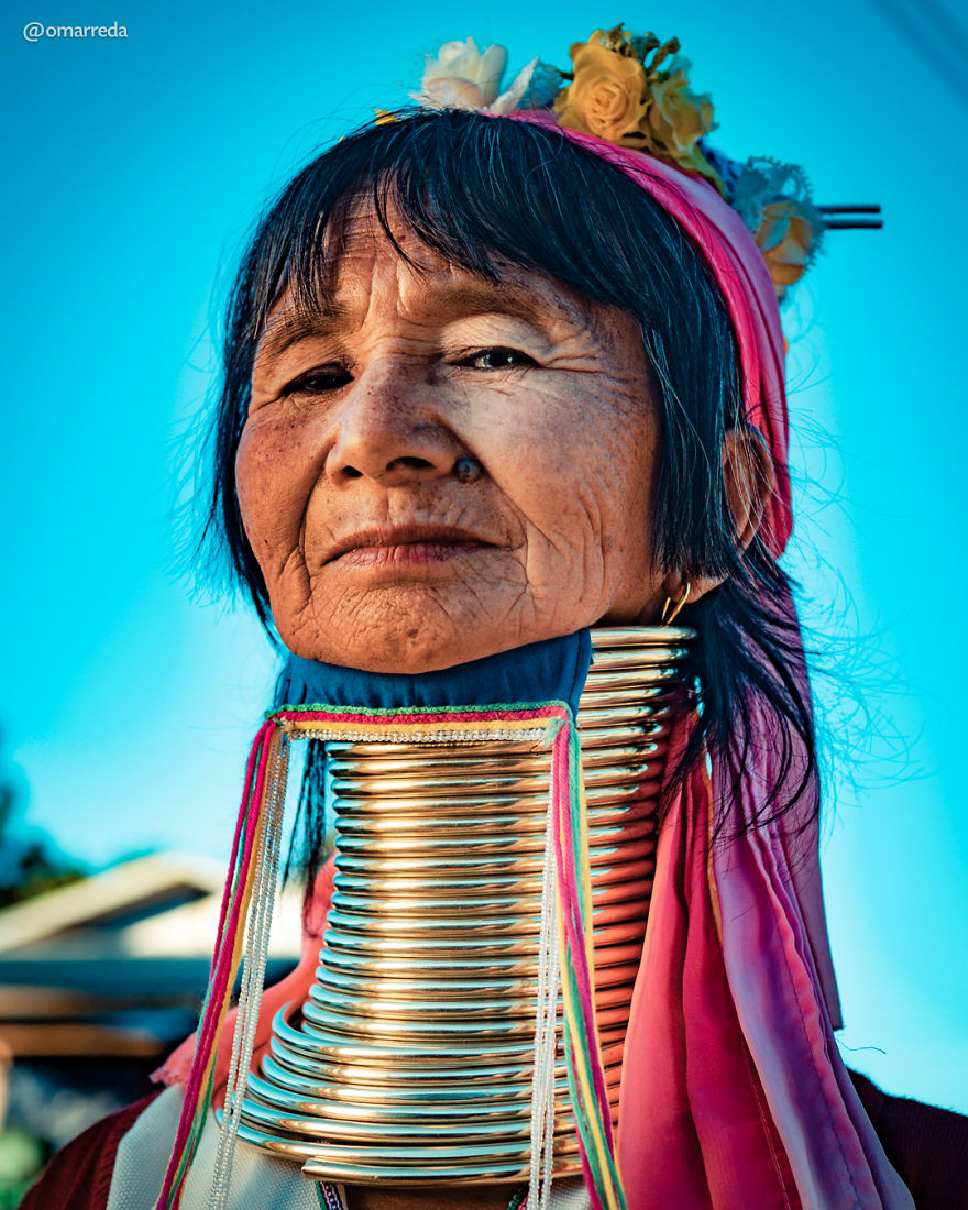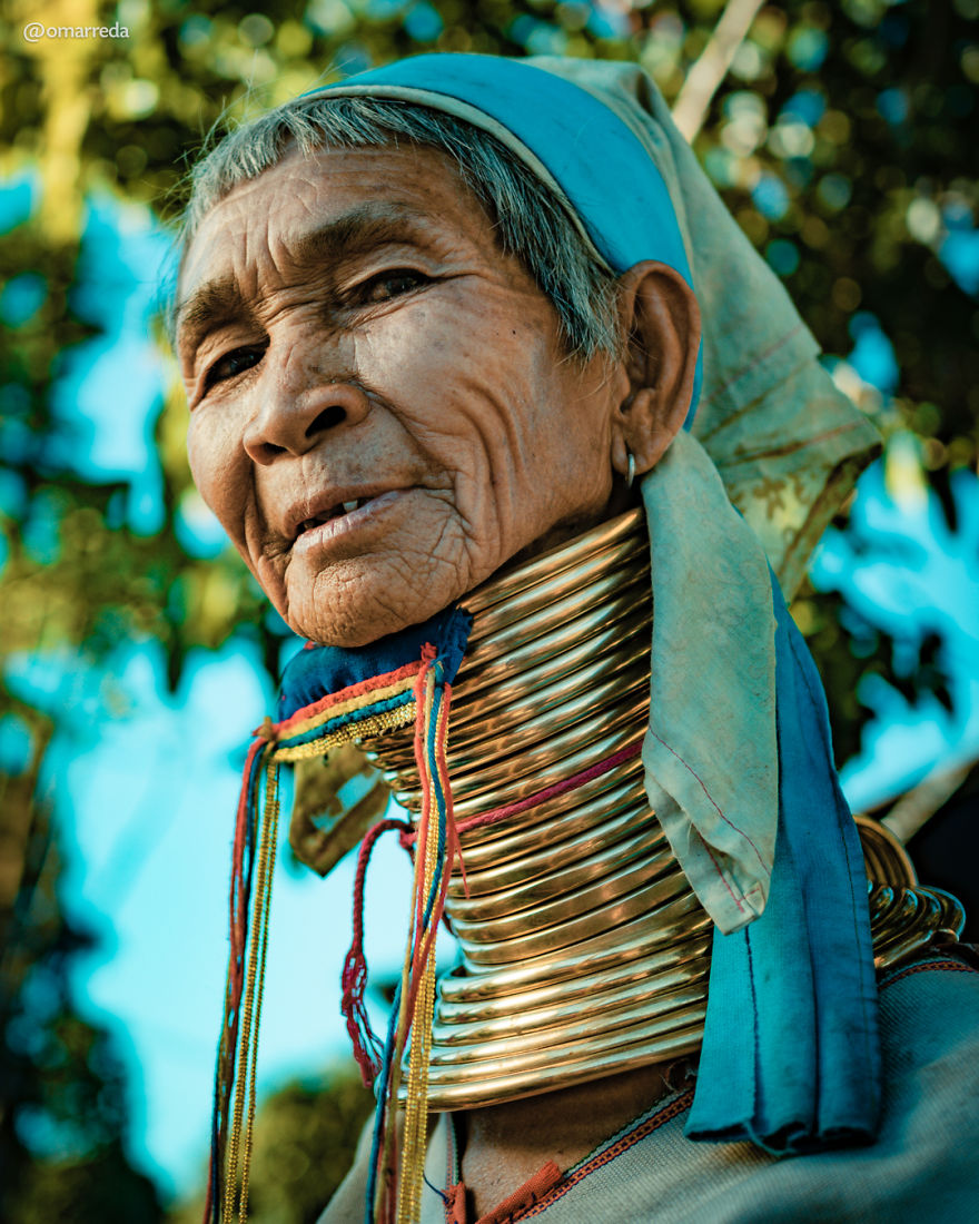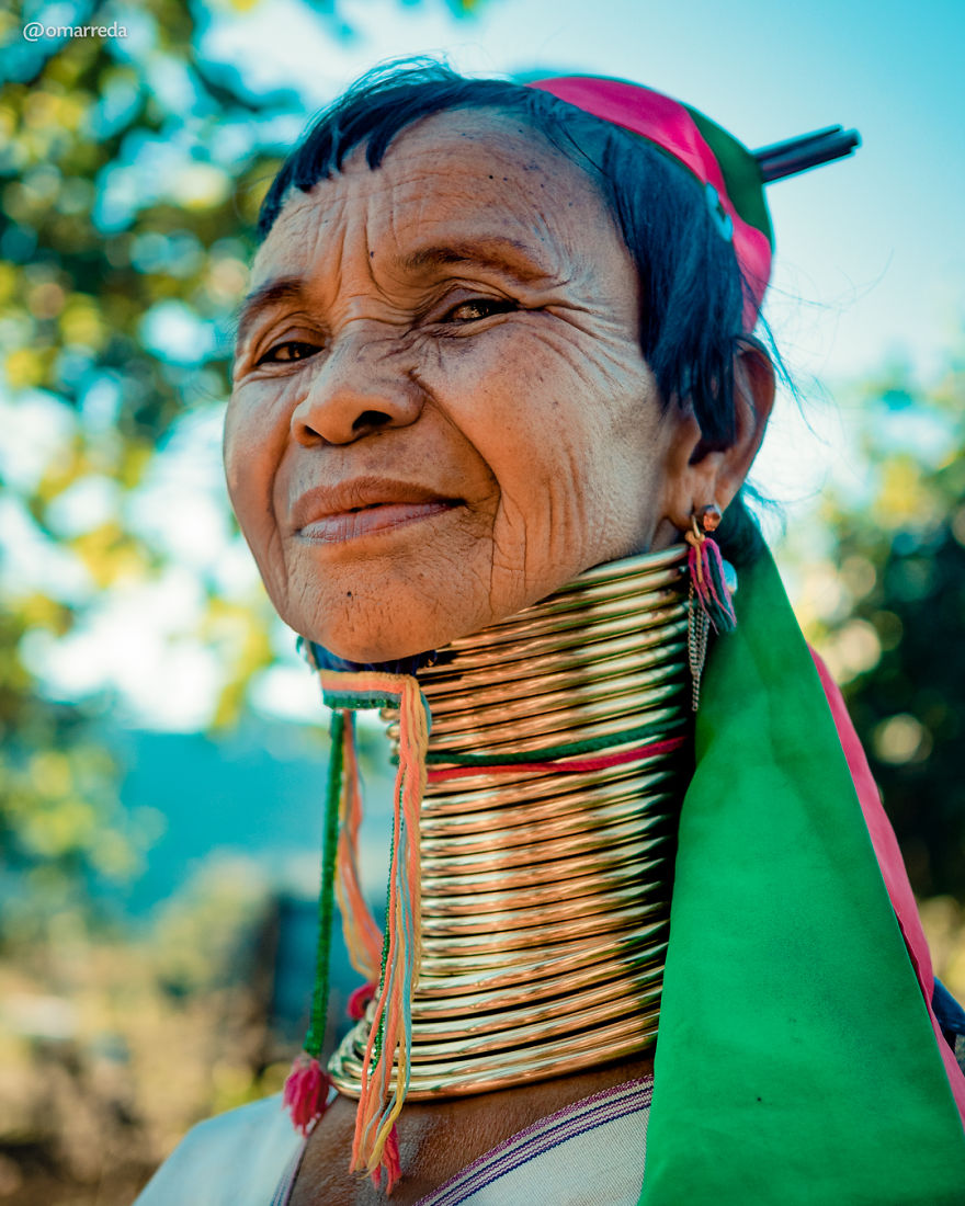 Разновидната култура на Мјанмар е дел од уникатниот идентитет на оваа држава. Омар Реда е еден од фотографите што имал чест да ги посети различните племиња кои живеат во таа област, вклучувајќи го и племето Кајан, каде што жените носат тешки ланчиња околу нивните вратови. Според нивното верување, овие прстени ги прават да изгледаат многу поубаво.