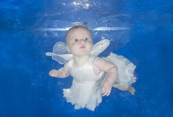 И покрај тоа што бебињата облечени во костими за капење се доволно слатки, интересно е тоа што родители можат да му изберат некаков костим на нивното дете, за фотографијата. Балерини, астронаути, дедо мразовци и суперхерои… Забележувате дека доколку бебето е добро позиционирано на фотографијата, тоа изгледа како радосно да си лета под вода? 🙂