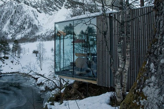 Хотелот „Juvet Landscape“ се наоѓа во северозападна Норвешка и она што е карактеристично за него се прекрасните глетки. Големите ѕидови од стакло ги тераат посетителите да погледнат кон надвор, кон неверојатните пејзажи. За разлика од вообичаените хотели каде што сите гостински соби се во една структура, сместувањето во овој хотел е во индивидуални куќи кои се распоредени насекаде низ околината. Секоја гостинска соба има еден или два „ѕида“ кои се целосно направени од стакло и со тоа им се овозможува на гостите да ги набљудуваат промените на времето, денот и сезоната.