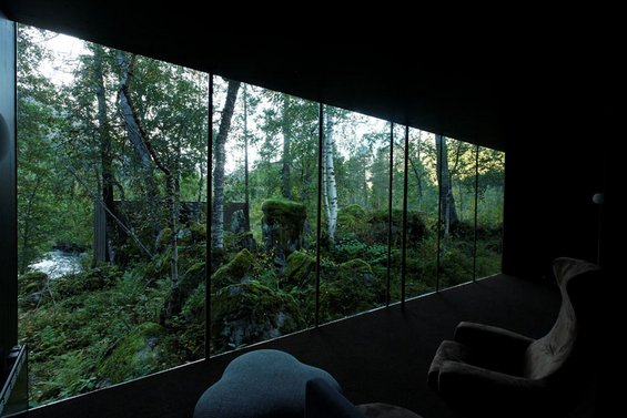 Она што погледот од овие соби не вклучува се останатите гости – ниту една соба не е насочена кон друга. Што се однесува до ентериерот, хотелот е дизајниран да го зголемува влијанието на пејзажите – ѕидовите се прелиени со провидно масло со црни пигменти за да се намали рефлексијата од внатрешната површина на прозорите.