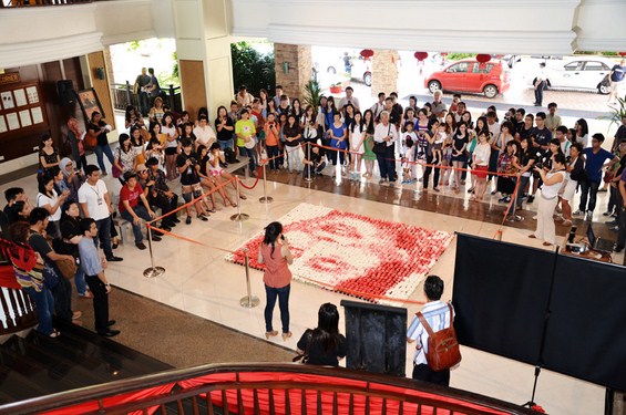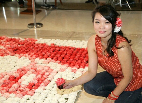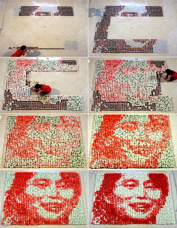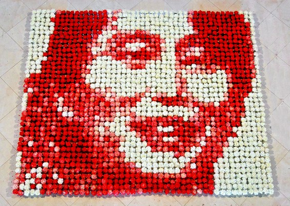 Инспирирана од политичарката Аунг Сан Су Кји која се бореше за демократија во Бурма (Република Мјанмар) и доби Нобелова награда за мир во 1991 г, креативната артистка Хонг Ји попозната под прекарот Ред, креирала кусовечен портрет од цвеќиња.