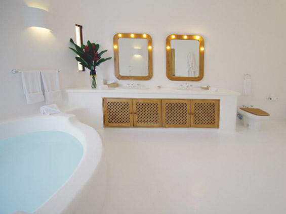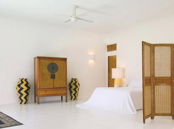 Три соби од главната куќа имаат директен излез на базенот, а покрај овие има уште еден апартман во посебна кула и две бунгалови до кои се пристапува со електрична гондола.