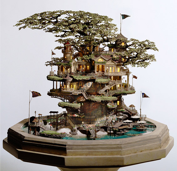 Таканори Аиба создава тридимензионална уметност која е комбинација од неговото знаење и искуство како илустратор и архитект. Но, она што ги прави неговите дела толку многу уникатни се деталите кои едноставно ќе ве остават без зборови. Секоја негова скулптура е како минијатурен свет, преполн со живот и приказни. Погледнете ја неговата досегашна колекција и обидете се детално да ја анализирате. Многу брзо ќе забележите дека колку подолго ја набљудувате скулптурата, толку повеќе нови работи ќе ви го примавуваат погледот…