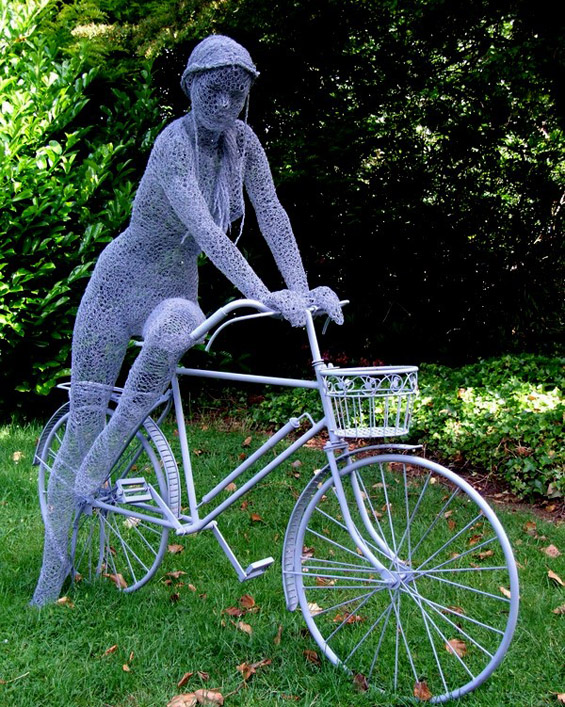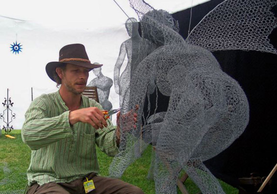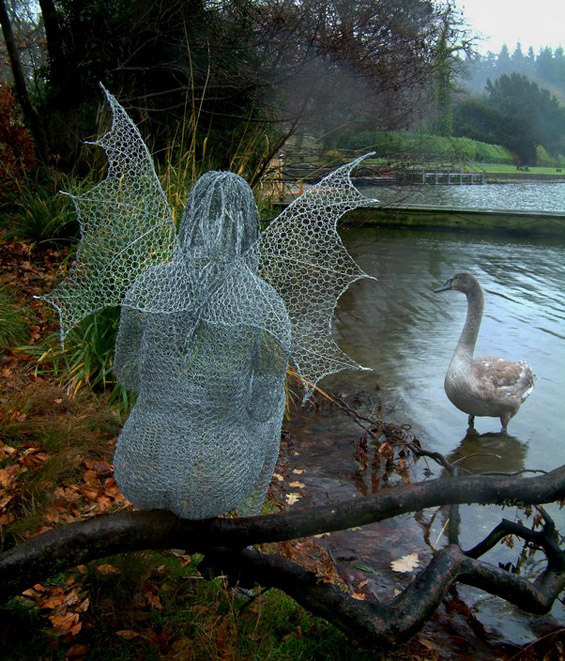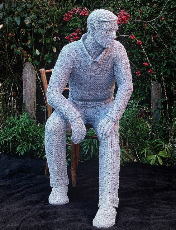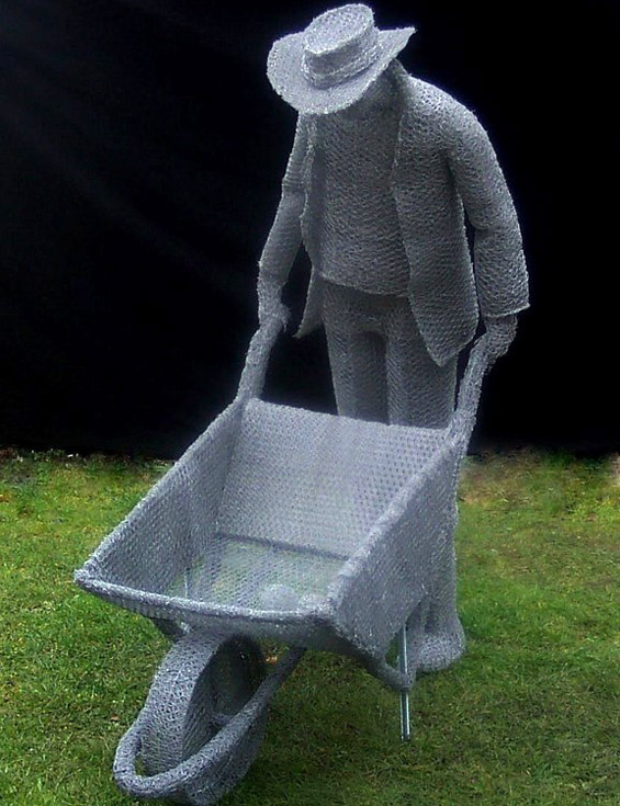 Британскиот уметник Дерек Кинзет, жицата за изградба на кокошарници ја претвора во илјадници фунти. Се разбира, не буквално. 🙂 Тој дошол до брилијантна идеја од плетената жица да изработува тродимензионални скулптури. Тие се неверојатно прецизни и во природна големина. За секоја од нив му се потребни најмалку 100 часа. Покомлицираните пак, ги прави со месеци. Но, затоа трудот го наплатува 6.000 фунти по модел.