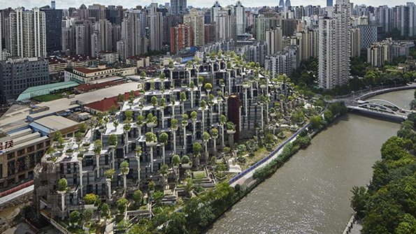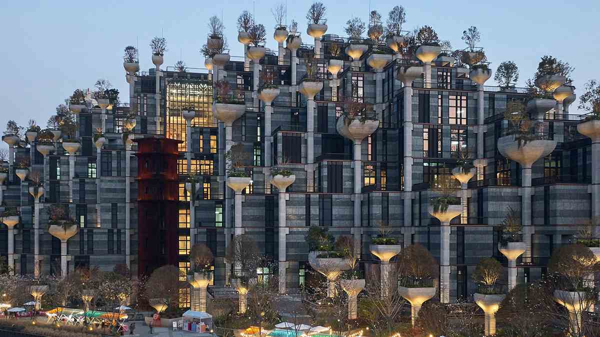 Се работи за проект на британското архитектонско студио Heatherwick за кинеската компанија Tian An кој го дизајнирале комплексот да изгледа како две планини покриени со шума. Монументалните бетонски столбови се користени како еден вид жардинери за секое дрво.
