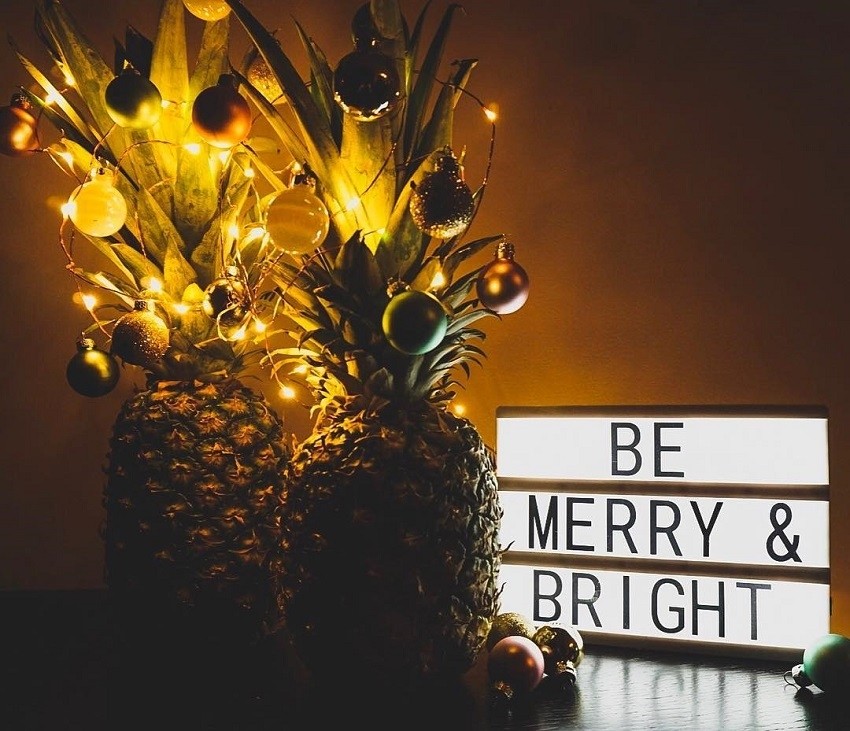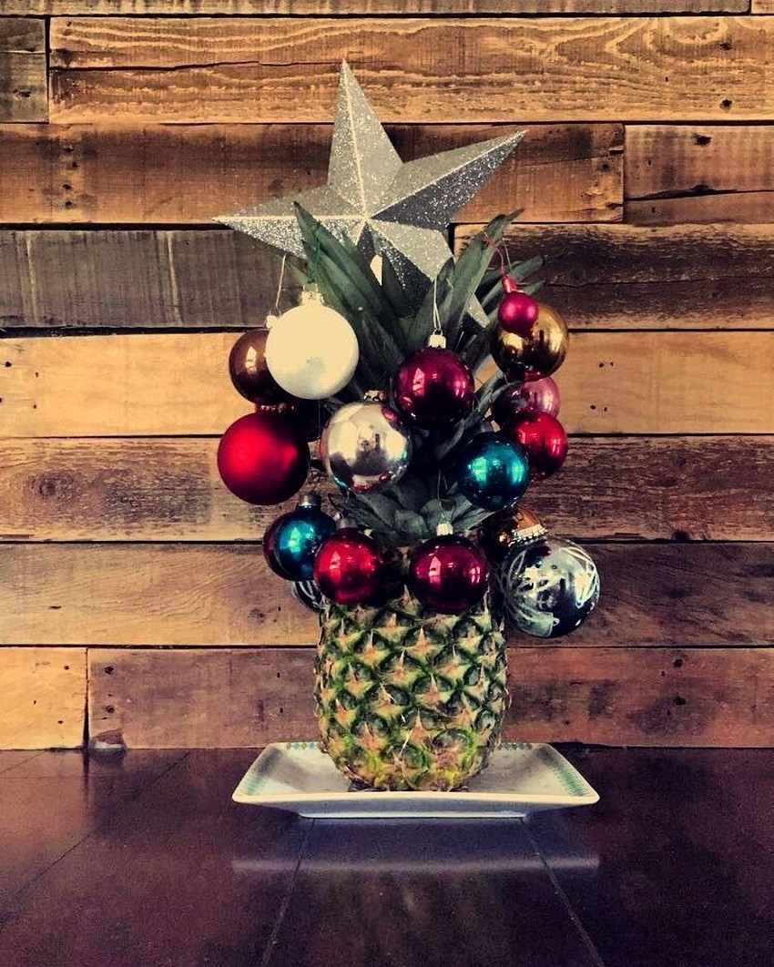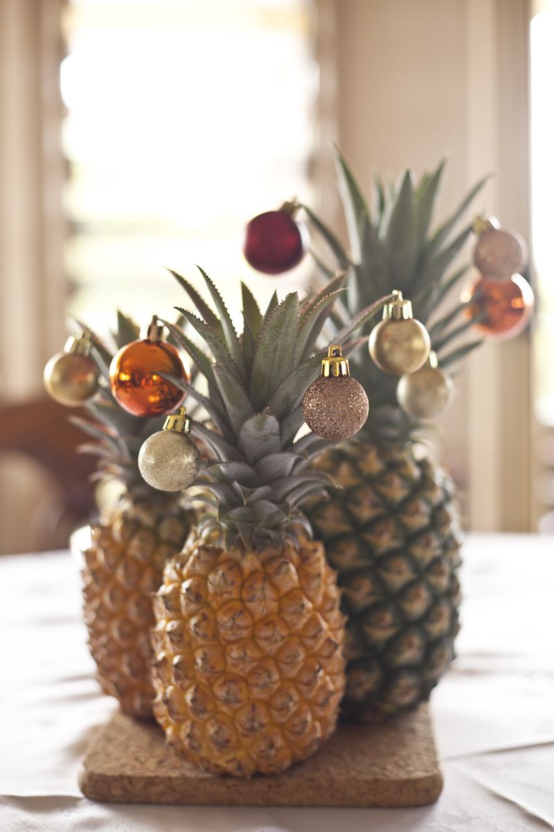 Ви откриваме неколку идеи како да го украсите ананасот во текот на празниците. Тоа ќе изгледа впечатливо, без разлика каде ќе го поставите, од масичката за кафе во дневната соба, па сè до работната површина во кујната.