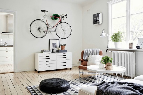 Многумина кои живеат во мали станови имаат и велосипед за кој никогаш не можат да најдат соодветно место. Токму затоа тој останува во ходник додека пак, други одлучуваат да го продадат или воопшто да не купат мислејќи дека немаат место каде да го чуваат. И покрај тоа што велосипедите се корисни и економични, тие знаат да заземаат драгоцен простор во вашиот мал стан. Па, доколку сакате брзо и едноставно да го решите овој проблем, погледнете ги следниве креативни начини на кој вашиот велосипед може да биде искористен како декоративен додаток во вашиот стан кој не зазема многу простор…