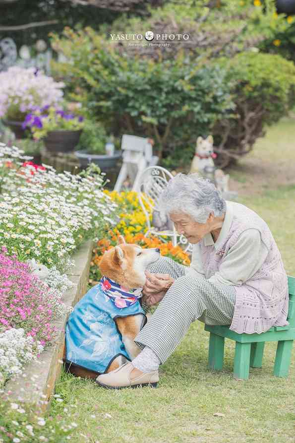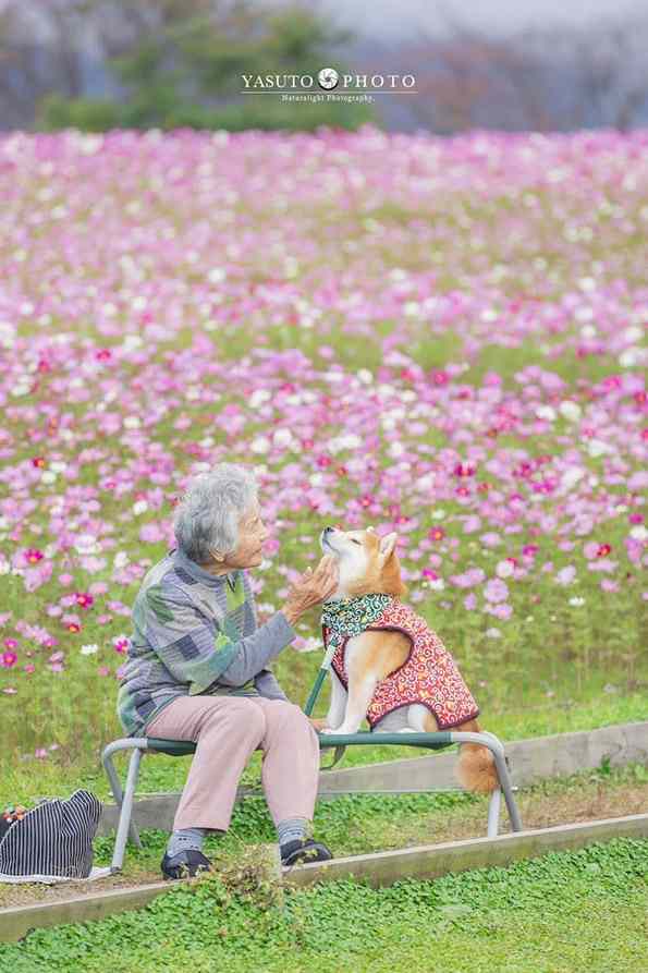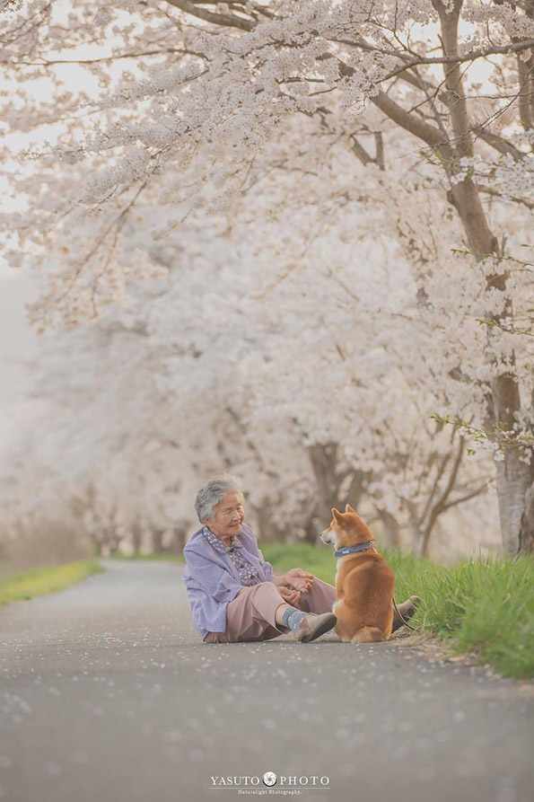 Јапонскиот фотограф Јасуто ја истакнува оваа посебна врска во неговата најнова серија фотографии. Сликите ја прикажуваат неговата постара баба и нејзиното сакано кученце Шиба Ину како уживаат во природата.