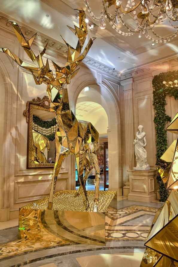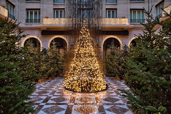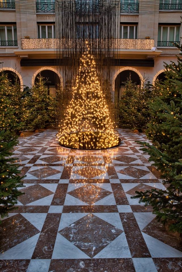 Џеф Летам, артистички директор на хотелот „Four Seasons Hotel George V“ во Париз, навистина се надминал себеси оваа година со празничните декорации во објектот. Тој креирал уникатно божиќно дрво од илјадници висечки електрични светилки. Окружена од 40 живи елки, на убавата инсталација ѝ се восхитувала и Опра Винфри, која неодамна го посетила парискиот хотел и пишала на нејзиниот профил на Инстаграм дека го обожава уникатното дрво.
