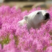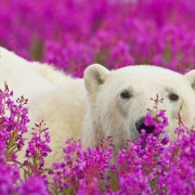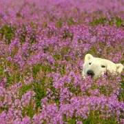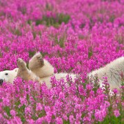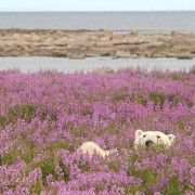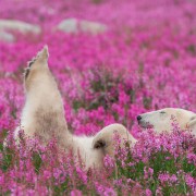 Многу ретко имаме можност да видиме поларна мечка надвор од нејзиното вообичаено живеалиште – Арктикот, но на овие поларни мечиња забавата не им е непозната. Во ретка фотосесија од канадскиот фотограф Денис Фест овие бели џинови се забавуваат во цветни полиња. Фотографиите се сликани во Хадсон Беј, Северна Канада, во близина на засолништата „Churchill Wild“ во Манитоба.