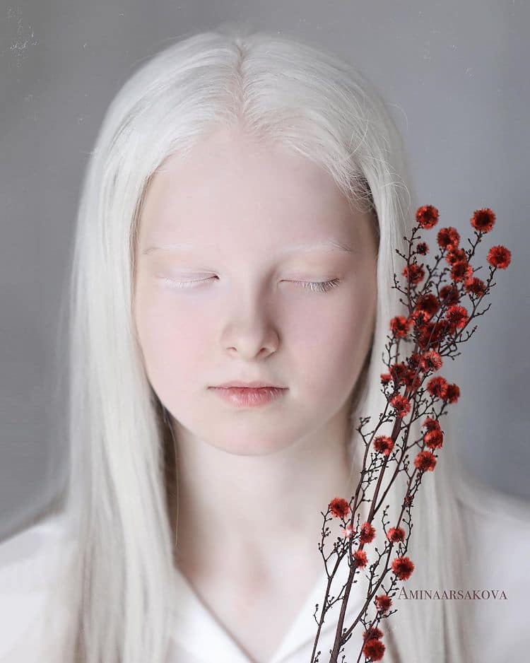 Кога фотографката Амина Арсакова забележала фотографија од младата девојка Амина Епендиева во еден трговски центар, таа била заинтригирана од нејзината уникатна убавина. Епендиева има две ретки генетски состојби: албинизам и хетерохромија. Албинизамот е состојба која ја намалува количината на меланински пигмент во кожата, очите и косата. Хетерохромија е термин кој се користи за состојба во која едно лице има различни бои на очите. Во нејзиниот случај, таа има бело-руса коса и бледа кожа со едно сино и едно кафено око.