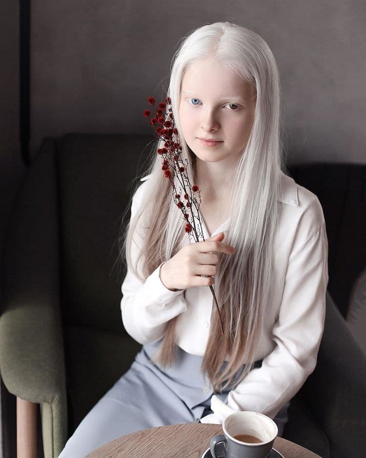 Портрети кои ја истакнуваат уникатната убавина на една девојка со албинизам и хетерохромија