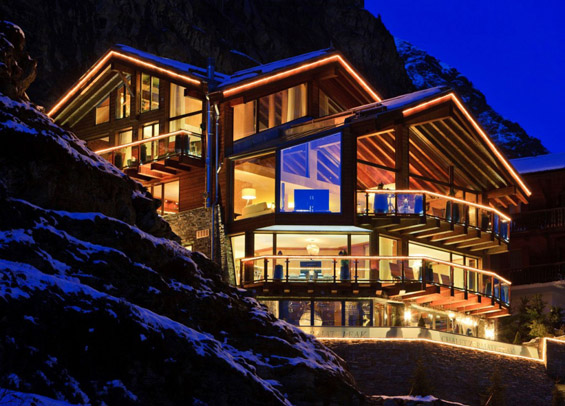 За оние кои се љубители на планините и снегот, оваа прекрасна вила сместена на швајцарските Алпи ќе претставува вистински рај за очи. Оваа фантастична зимска резиденција се наоѓа во пејзажното село Цермат, Швајцарија и нуди неодолив поглед кон врвот Матерхорн.