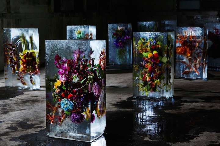Со текот на годините, ботаничкиот артист Макото Азума константно наоѓа нови начини на кои ја истражува убавината на растенијата така што ги поставува во неверојатно уникатни околини. Но, неговата најнова изложба ни нуди неверојатен поглед кон променетиот животен циклус на букетите од цвеќиња кои се „заробени“ во коцки мраз.