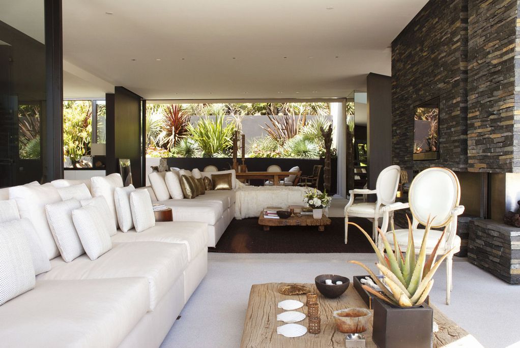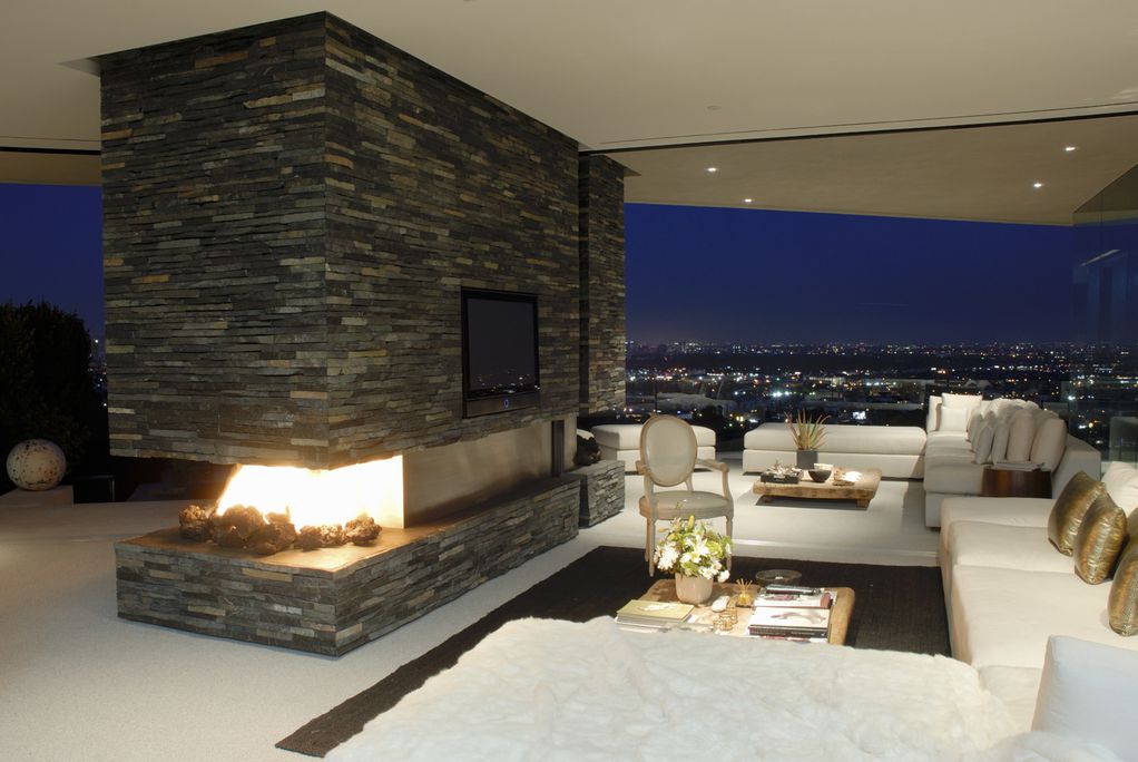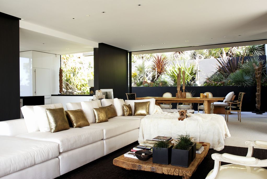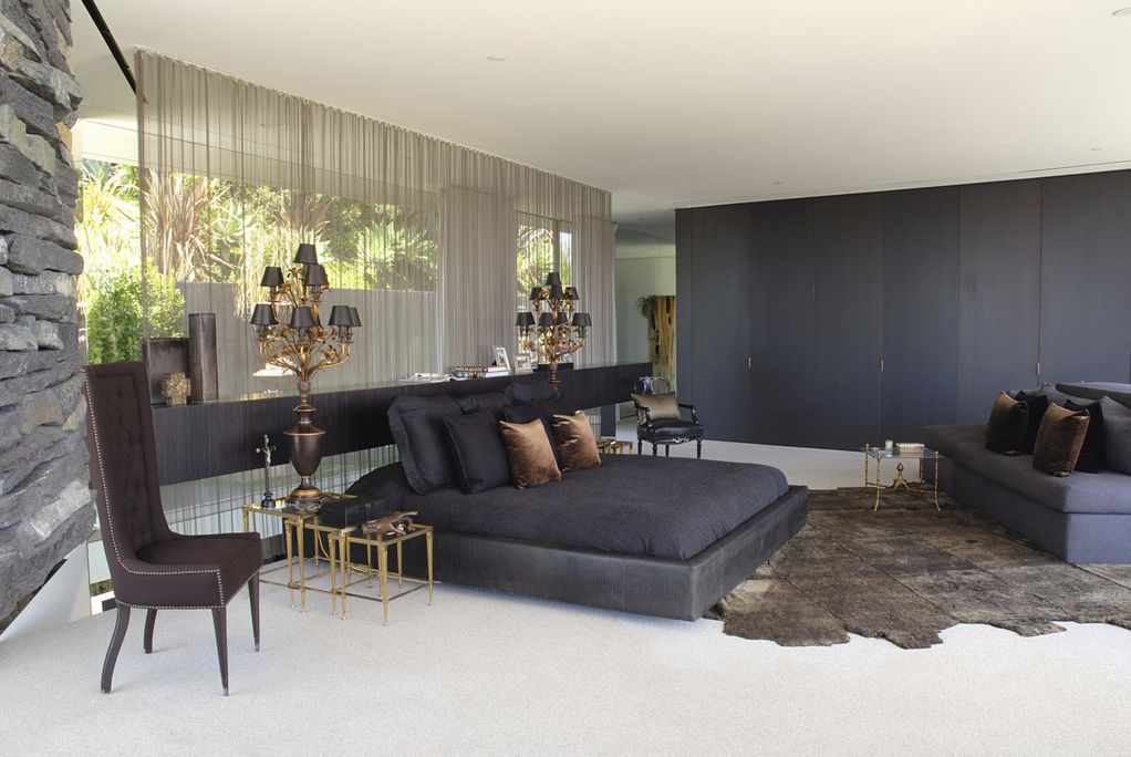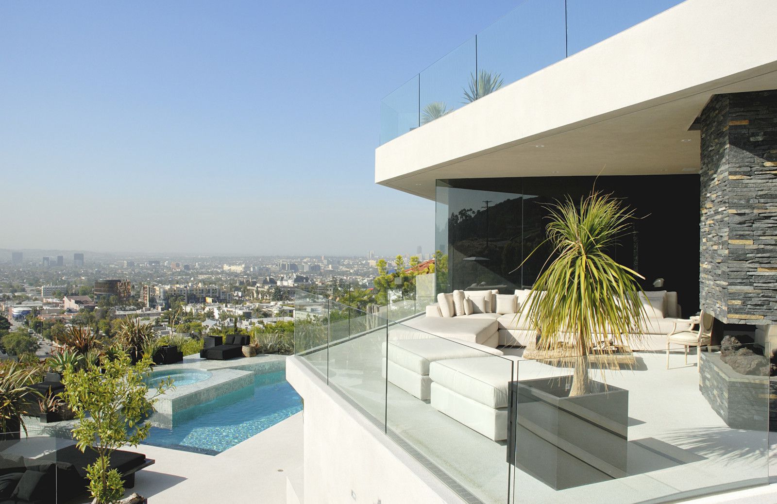 Како и многу куќи и станови во Лос Анџелес, и овој има базен, а искуството е уште повеќе посебно бидејќи базенот нуди и бесконечен поглед кон градот. Воодушевени сме и од стаклениот ѕид на терасата што го отсликува прекрасниот зелен пејзаж. Внатрешноста е украсена во совршена хармонија на еклектичен стил, рустикален, рококо, модерен и уште неколку, што докажува дека разликите можат да функционираат совршено заедно и да се надополнуваат едни со други. Бањата со црна када е концепт на висока елеганција, додека атмосферата во дневната соба навечер се претвора во чиста магија.
