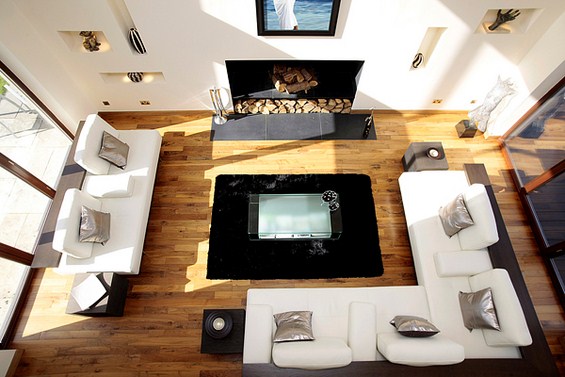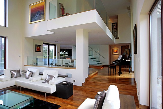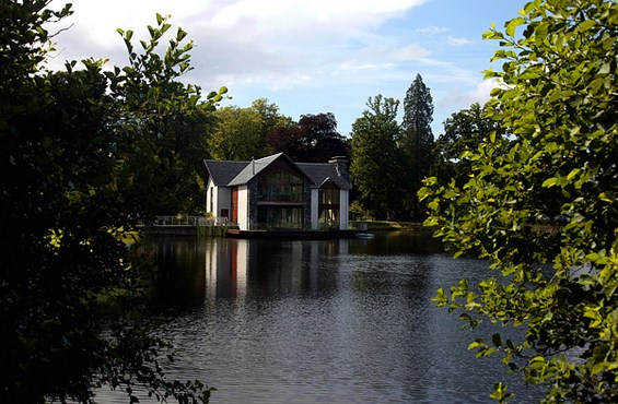 Модерната вила има свое приватно езеро, два ката, во кои совршено добро е искомбиниран модерниот мебел, со надворешниот природен свет, благодарение на големите прозорци расположени од под до таван. И покрај тоа што овој ентериер дефинитивно му припаѓа на 21-от век, сепак кога ќе погледнете надвор во езерцето, добивате чувство како да се наоѓате во некоја традиционална колиба.
