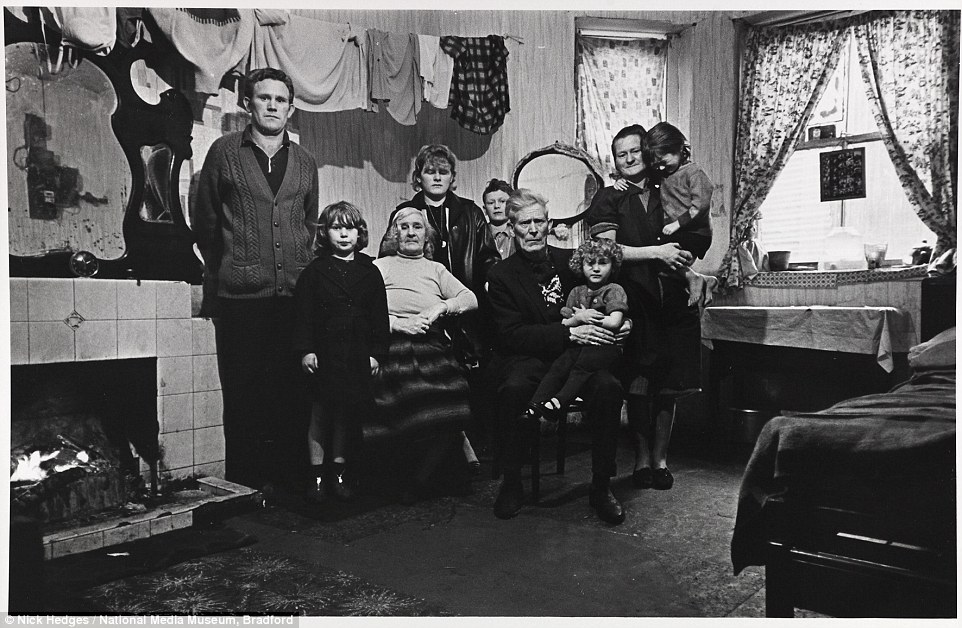 Три генерации од ова ирско семејство живееле заедно во еден подрум во Ливерпул. На сликата 9-членото семејство позира под жицата за сушење алишта во подрумската соба.