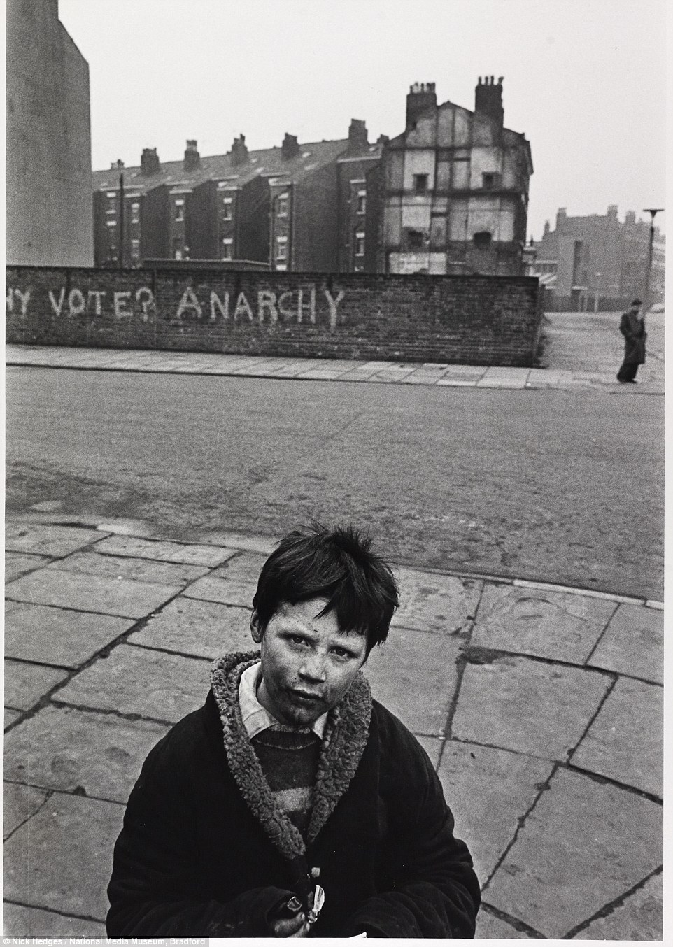 На фотографијата е фатено сиромашно момче со правливо лице и збунет поглед кон камерата.