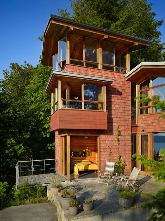 Оваа компактна, но прекрасно дизајнирана шумска куќа е идеално место за повлекување од бучното секојдневие. Со волшебен поглед кон езерото, едноставно ќе ве остави без здив. Изградена е од дрвен материјал кој совршено се вклопува во природната околина. Сместена е на Олимпискиот Полуостров во Вашингтон и располага со околу 178 квадратни метри. Вилата е проект на „BjarkoSerra Architects“, а за неговата реализација се искористени модерни елементи во комбинација со природно кедрово дрво.