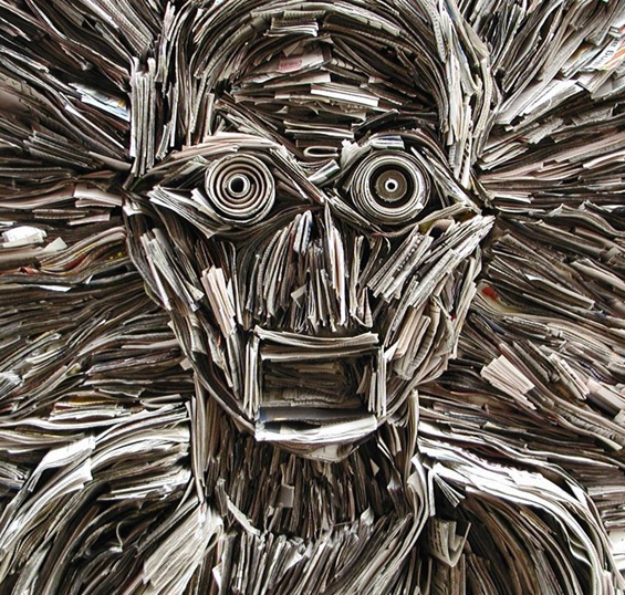Американскиот уметник Ник Георгиу не се откажува од намерата весниците да ги врати меѓу читателите. Од купишта хартија за рециклирање, тој прави вистинска уметност. Изработува портрети и скулптури од стари локални весници и книги, со цел вниманието да го сврти кон пишаниот збор. Неговите дела, како да зјапаат во вас и како да се обидуваат да ви соопштат нешто. Додека ги гледате, имате чувство дека во секој момент, пред вас ќе ги исфрлат сите информации и приказни, испишани на листовите хартија од кои се изработени.