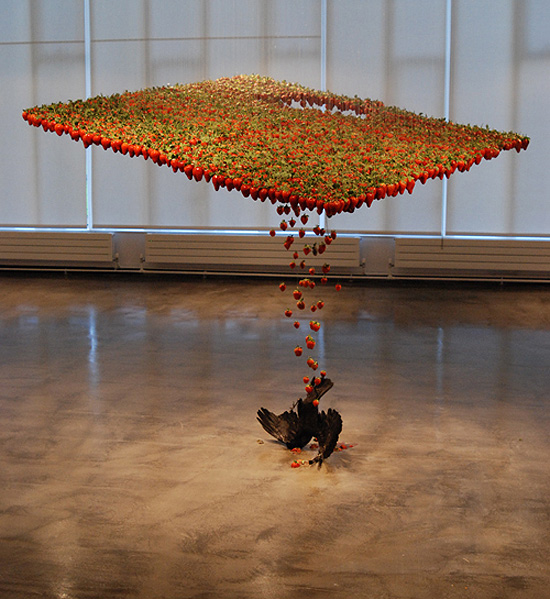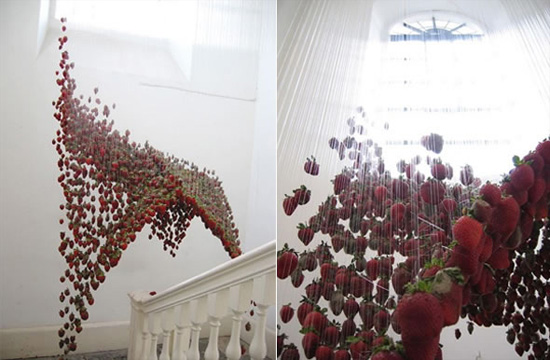 Скулпторката Клер Морган од Белфаст, Ирска е креаторот на ова раскошно парче уметност. На прв поглед овие скулптури изгледаат како да паѓаат надоле во воздухот, особено „Прекривката од јагоди“.