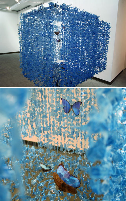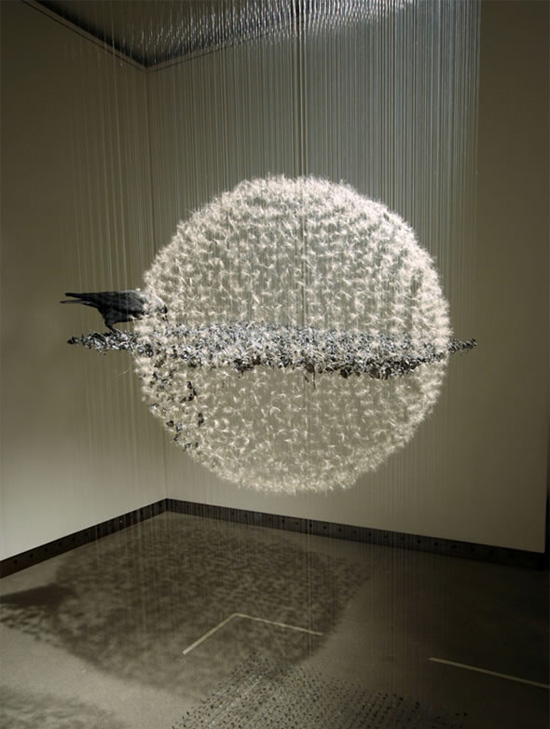 За изработката на скулптурите се употребени природни материјали како пердуви, овошје и цвеќиња, кои се прикачени на рибарски конец. Инспирација за создавање на оваа визуелизација, авторката ја црпи од нејзината голема љубов кон органиката и животниот процес.