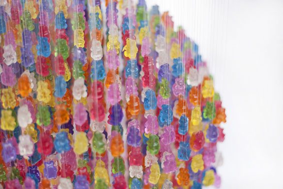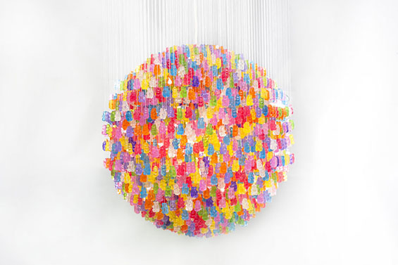 Њујоршкиот артист Кевин Чампени мора да е голем гурман за слатки, штом смислил начин како да го декорира просторот за живеење со бонбончиња. Toј направил рачно изработен лустер од 5.000 разнобојни гумени мечиња. Неговиот производ е достапен во две варијанти: 45 см долг во дијаметар, направен од 3.000 гумени бонбони и тој од 5.000 мечиња, што е 79 см во дијаметар.
