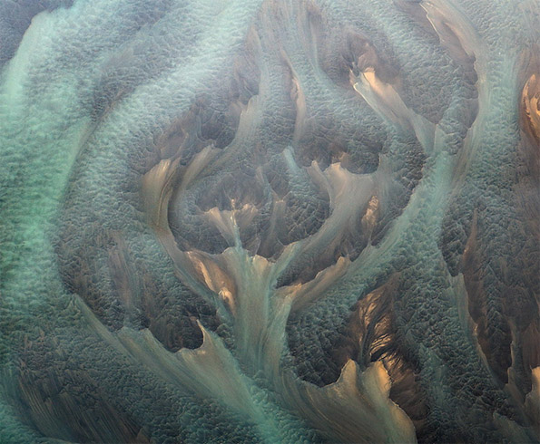 На прв поглед, овие навидум апстрактни фотографии се малку тешки за дешифрирање. Но, ако подобро ги погледнете многу брзо ќе почнете да забележувате необични и несекојдневни пејзажи. Направени од страна на рускиот фотограф Андре Емолаев, овие фотографии се дел од неговата фотоколекција на неверојатните вулкански реки во Исланд гледани од малку поинаква перспектива. Тие се толку необични и интересни што дури изгледаат како цртежи.