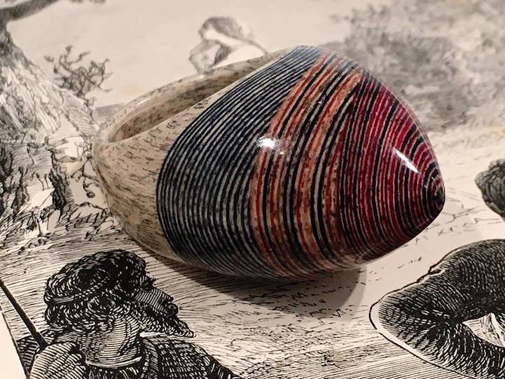Лондонскиот артист Џереми Меј на старите и неупотребливи книги им дава ново руво и нов начин повторно да оживеат, овој пат во форма на скулптури и уметнички дела кои можат да бидат носени во форма на накит. Тој ги трансформира и преобликува текстовите и илустрациите од книгите во модерни прстени, белегзии, ѓердани и многу други слични предмети. Нивниот слоевит и колоритен дизајн воопшто не наликува на книгите и публикациите од кои потекнуваат, напротив, накитот изгледа како сјаен и стилски моден додаток кој воодушевува со различните форми и облици.