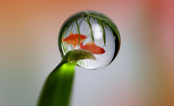 Иако овие фотографии личат како да се дел од скапа маркетиншка кампања, сепак станува збор за дела на еден макрофотограф, кој фотографира капки вода. Талентираниот Брајан Валентајн, кој е пензиониран и има 61 година, ги прави овие интересни фотографии, ставајќи слики од магазини зад листовите со капки во неговата градина. Една слика од телефонски именик на која има две рипки, тој успева да ја претвори во аквариум.