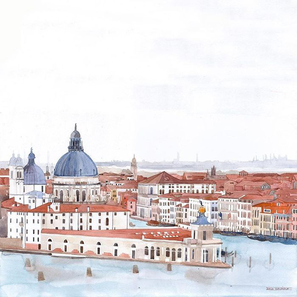 Убавината на Венеција претставена преку цртежи насликани со водени бои