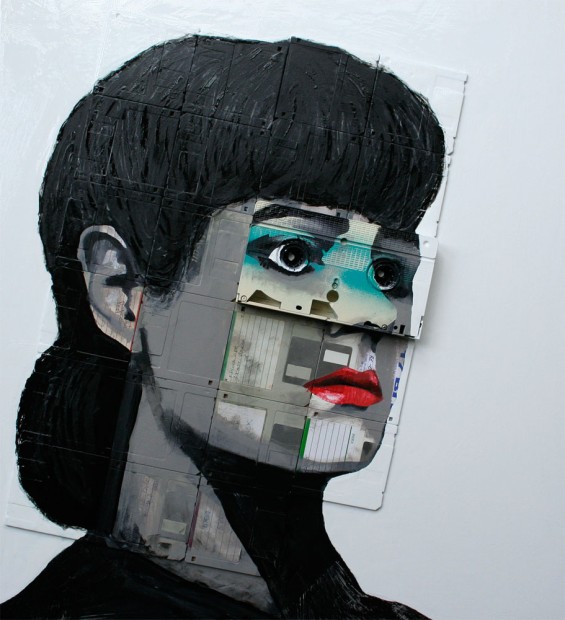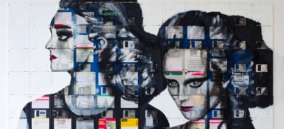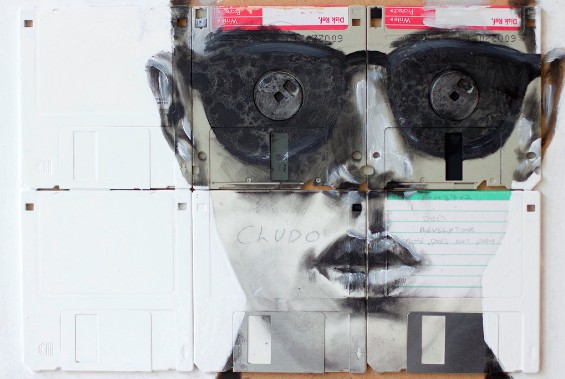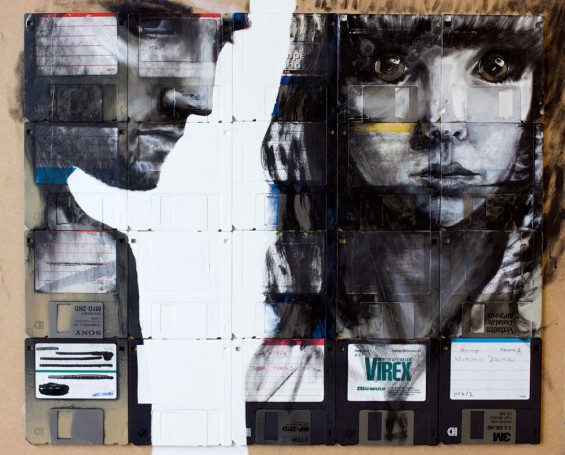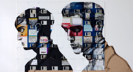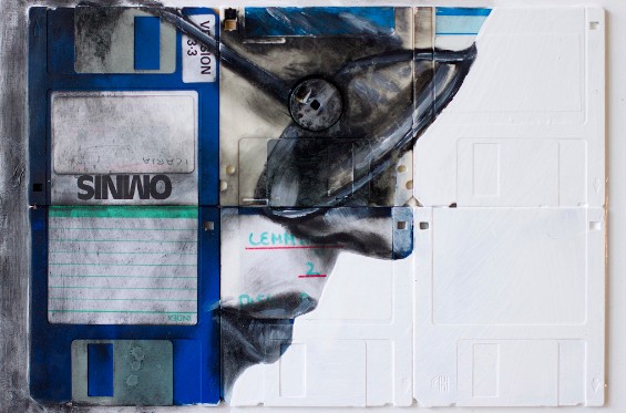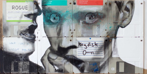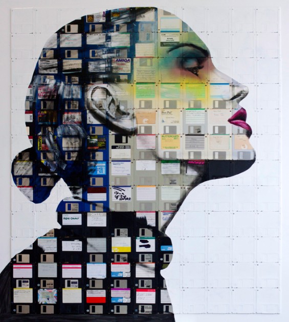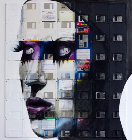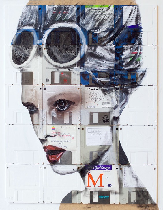 Британскиот уметникот Nick Gentry кој дипломирал во Central Saint Martins е автор на оваа рециклирана уметност. Старите и веќе неупотребливи флопи дискови се неговата инспирација. Тој ги реди дисковите едно до друго како сложувалка и потоа врз нив црта портрети. За овие технолошки изумрени производи вели: