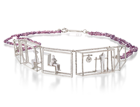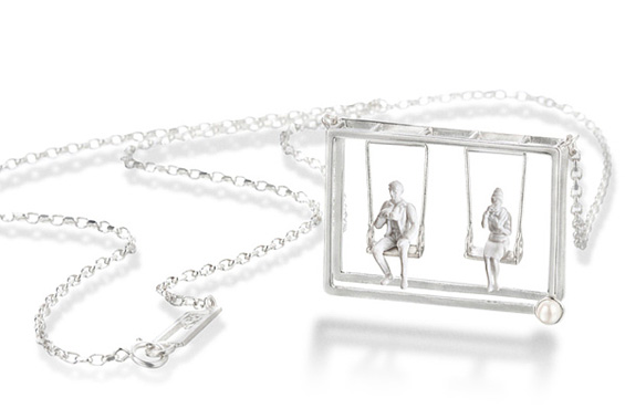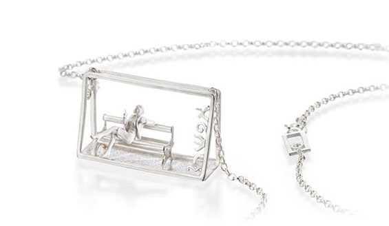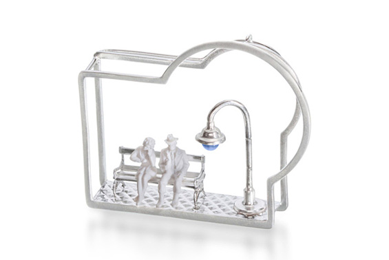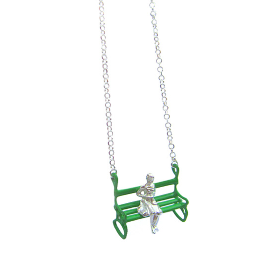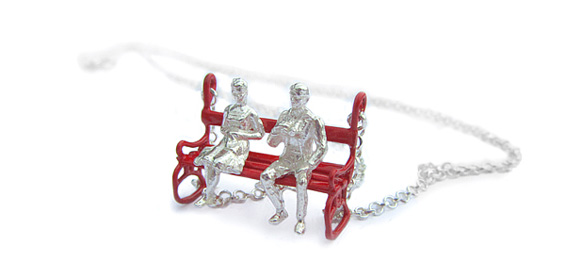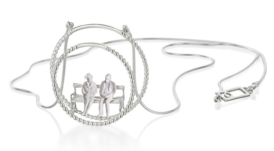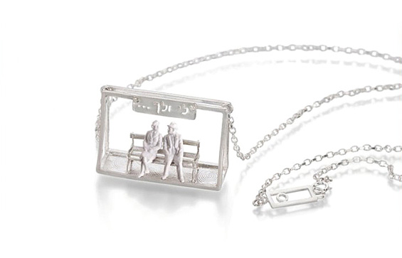 Овој уникатен накит е дел од колекцијата „Snapshot“, направена од израелското дизајнерско студио „Yael + Tal“. Колекцијата е составена од обетки, ѓердани и нараквици на кои се претставени минијатурни луѓе, кои одмараат седнати на клупа или на некоја лулка.